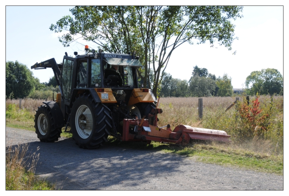 Der Holzschnitzelpfad entlang des Zaunes wurde erweitert und die angrenzende Graben-und Grünflächen sowie die Bäume des Jahres frei gemäht. Auch großes Gerät kam zum Einsatz und unterstützte den Arbeitseinsatz im Bürgerwald Thiede.