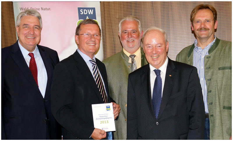 Leo Dautzenberg (Jury-Mitglied), Wilhelm Schmitt (Bürgerwald Thiede), Jürgen Reinholz (Umweltminister Thüringen), Dr. Wolfgang von Geldern (Vorsitzender des SDW) und Franz Hüsing (Bürgerwald) bei der Preisvergabe im Augustinerkloster in Erfurt (von links).