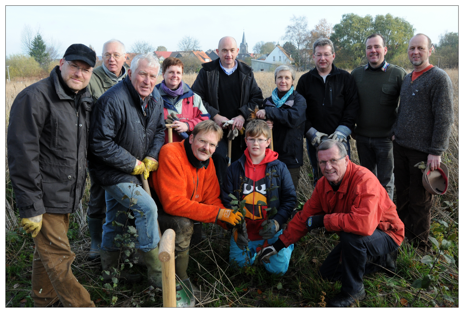 Bei der November-Aktion fand auch der Baum des Jahres 2013 – der Wildapfel – seinen Platz am Rand des Schulwaldgeländes. Die Vorsitzenden Wilhelm Schmitt und Franz Hüsing nutzten die Gelegenheit und erläuterten das Projekt Bürgerwald, das einen wichtigen Beitrag zum Klimaschutz leistet.