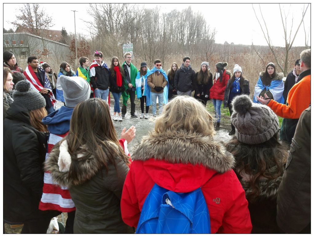 Am 23. Februar 2018 fand im Bürgerwald Thiede ein besonderer Höhepunkt statt: Mehr als 50 Austauschschüler/innen aus 18 Nationen verlebten vor Ort einen spannenden Waldtag. Waldpädagogen vermittelten den Jugendlichen viel Wissenswertes über Wald und dessen Bedeutung.